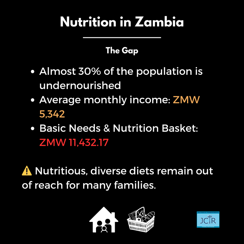 While Zambia has made progress in producing sufficient food, this has not yet translated into nutrition security for its people. Families continue to eat to survive rather than to thrive amidst high malnutrition levels. Urgent action is needed to ensure that nutritious, diverse diets are both available and affordable, so that every Zambian household can live with dignity.