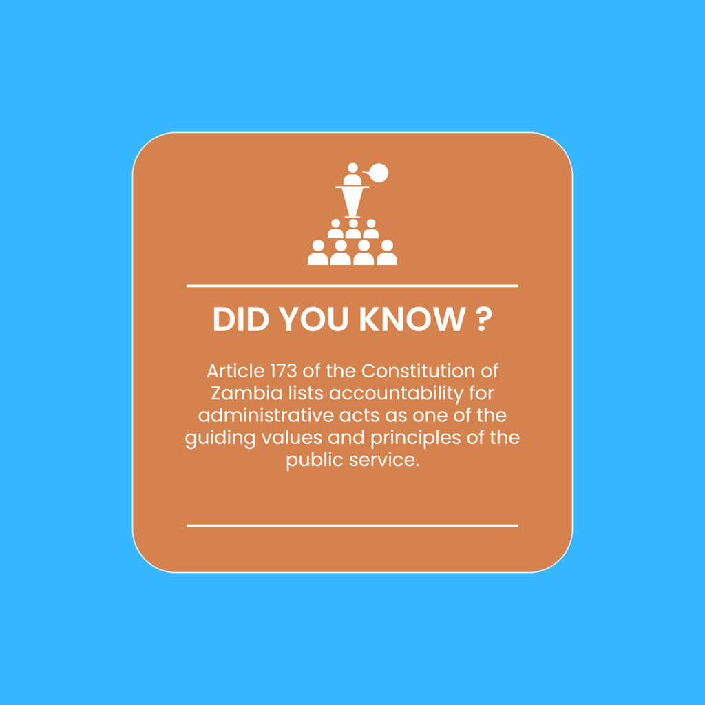 The Constitution of Zambia provides for accountability across various levels and branches of Government. This means accountability is not confined to one institution or arm of the State. Instead, it cuts across the Executive, Legislature, Judiciary, local authorities, the public service, and electoral processes.