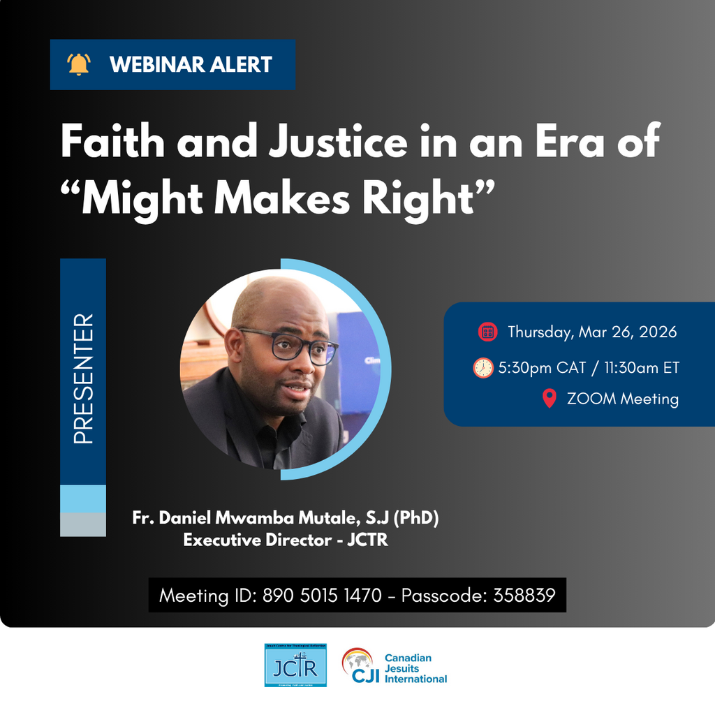 We are pleased to share that Fr. Daniel Mwamba Mutale, SJ (PhD), Executive Director of the Jesuit Centre for Theological Reflection (JCTR), will deliver a keynote address at an upcoming webinar exploring the intersection of faith, justice, and global power dynamics.